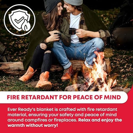 Ever Ready First Aid Olive Drab Green Warm Fire Retardant Blanket, 66" x 90"