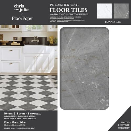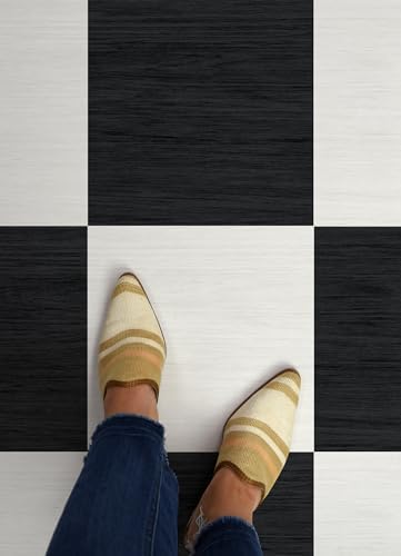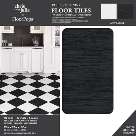 FloorPops x Chris Loves Julia 12-in by 12-in Lawrence Black Peel and Stick Floor Tiles, FP5059