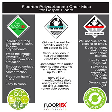 Floortex Cleartex Ultimat Polycarbonate Chair Mat for High Pile Carpets, 60 X 48, Clear