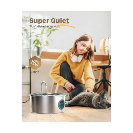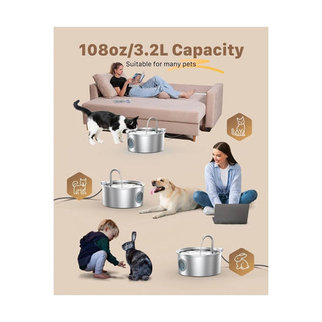 FOFNON Cat Water Fountain Stainless Steel - Dog Automatic Waterer Bowl - Auto Pet Di...