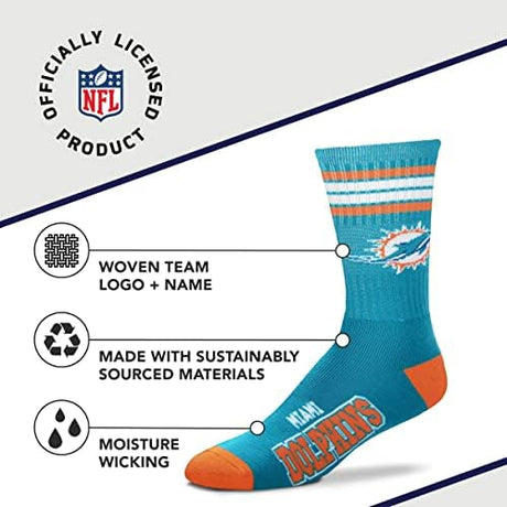 For Bare Feet Men's NFL 4-Stripe Deuce Performance Crew Socks