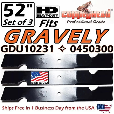 For Gravely COPPERHEAD 3-PACK 52" HD GRAVELY HIGH LIFT BLADES GDU10231, 0450300 -MADE IN USA