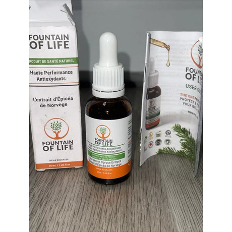 Fountain Of Life Antioxidant Spruce Extract 1 Fl Oz Sealed Damaged Box