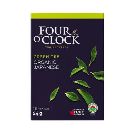Four O'Clock Organic Green Tea Japanese, Non-Gmo, Kosher, Gluten-Free, 16 Count, 24g