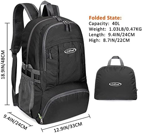 G4Free 40L Lightweight Packable Hiking Backpack, Waterproof Travel Daypack