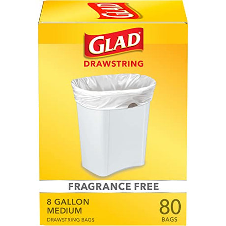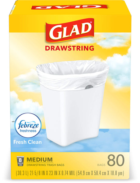 Glad Medium Kitchen Drawstring Trash Bags, 8 Gal, Fresh Clean Scent, 80 Ct (Package May Vary)