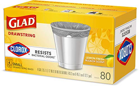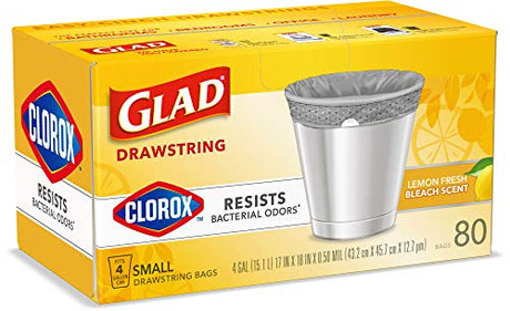Glad Medium Drawstring Trash Bags with Clorox, 8 Gal, Lemon Fresh Bleach, 80 Ct (Package May Vary)