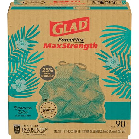 Glad ForceFlex MaxStrength Kitchen Trash Bags, 13 Gal, Bahama Bliss Febreze, 90 Ct (Pack May Vary)