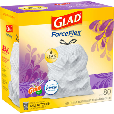Glad ForceFlex Drawstring Trash Bags, 13 Gallon, Gain Lavender, 110 Count (Package May Vary)