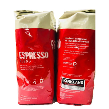 (Pack of 2) Kirkland Signature Dark Roast ESPRESSO BLEND Coffee Roasted By Starbucks 32 Oz. Bag