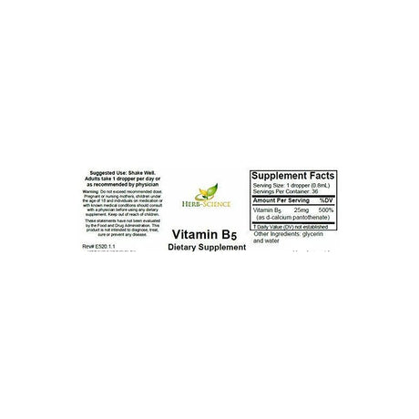 Herb-Science Liquid Vitamin B5 Pantothenic Acid, Alcohol-Free Extract - Herb-Science