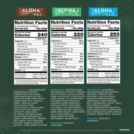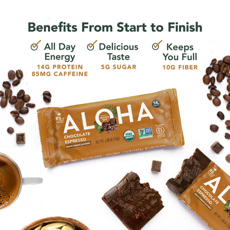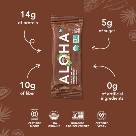 Aloha Organic Plant Based Protein Bars Chocolate Chip Cookie Dough, 1.98 Oz,(Pack of 12)