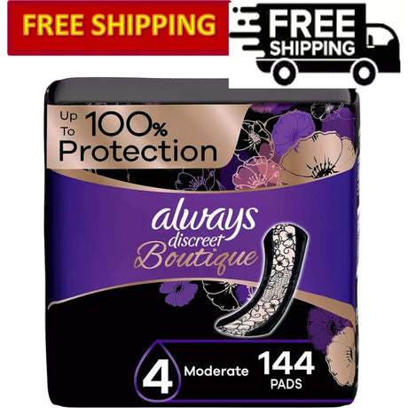 Always Discreet Boutique Incontinence Pads, Size 4, Moderate, Regular, 144 Count