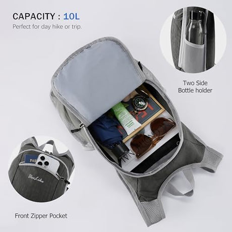 10L Small Hiking Backpack Travel Daypack Lightweight Packable Back Pack for Women Men(Iron Grey)