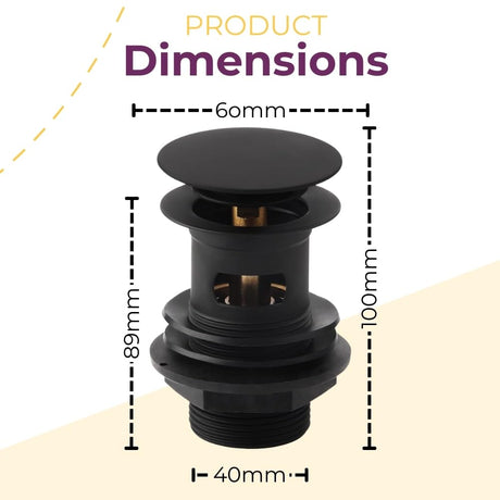 Bathroom Black Basin Waste | Slotted Waste | Pop Up Sink Plug | Click Clack Waste