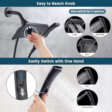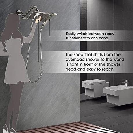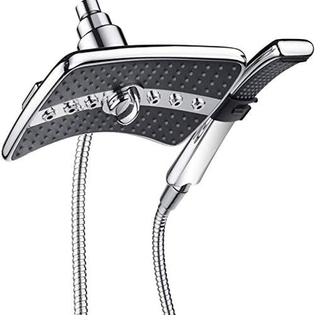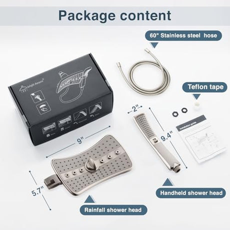 BRIGHT SHOWERS Brushed Nickel Shower Combo - Fixed and Handheld Heads With Grey Faceplates