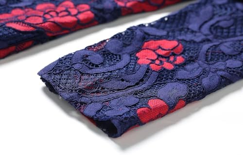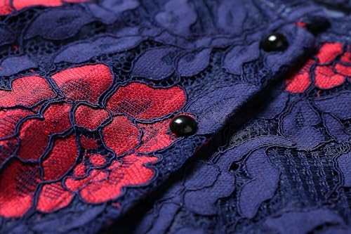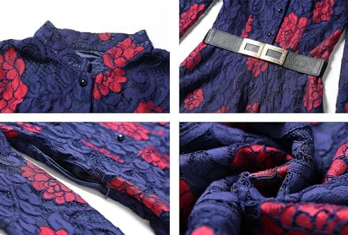 LAI MENG FIVE CATS Women's Flowy Lace Floral Hollow Out Short Sleeve Dress with Belt