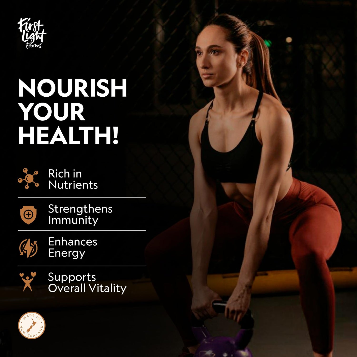 - Sourced from Ethical, Grass-Fed Farms: At First Light Farms, we prioritize quality. Our Wagyu beef is sourced from 100% grass-fed and finished cattle, raised without added hormones, or genetically modified feed. Enjoy peace of mind knowing your supplements come from humane and sustainable practices.