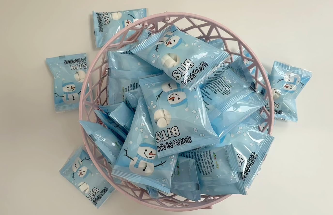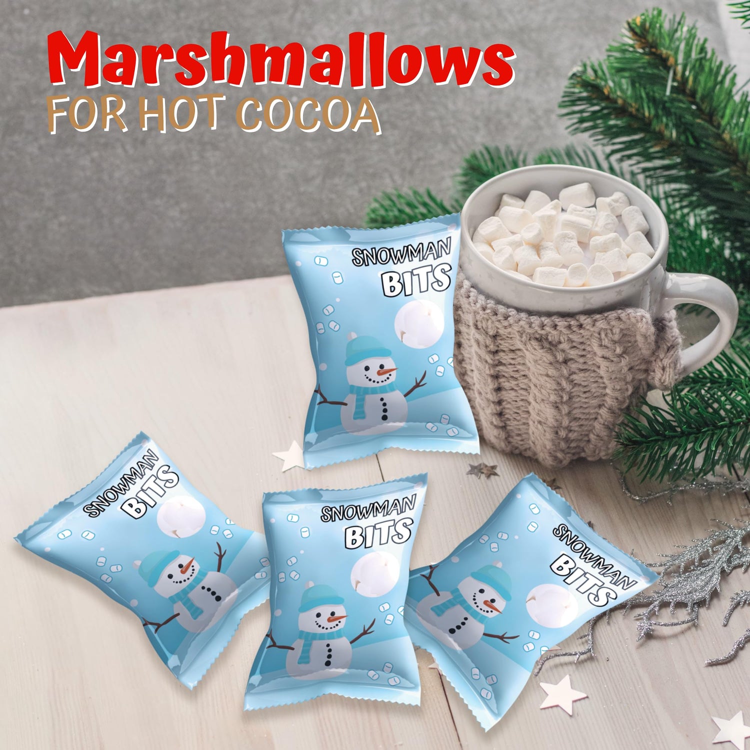 - Convenient Packaging: The individual wrapping keeps the marshmallows fresh and makes them easy to distribute or pack as party favors, christmas goodie bag fillers. Christmas Snowman Mini Marshmallows Packets are perfect for Christmas Candy Stocking Stuffers for Kids & Adults