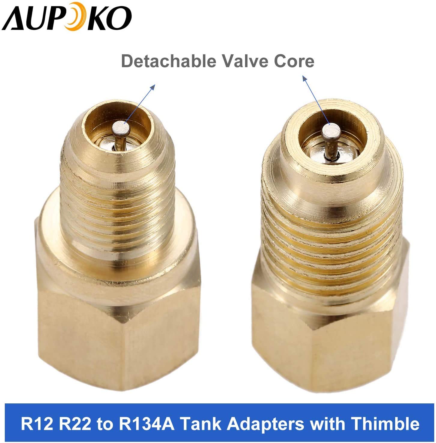 Aupoko R12 R22 to R134a Adapters, R134A Refrigerant Tank Adapter Kit with Valve Core Remover, 1/4" Male to 1/2" Female, 1/4’’ SAE Female X 1/2’’ Male Refrigerant Tank Adapters