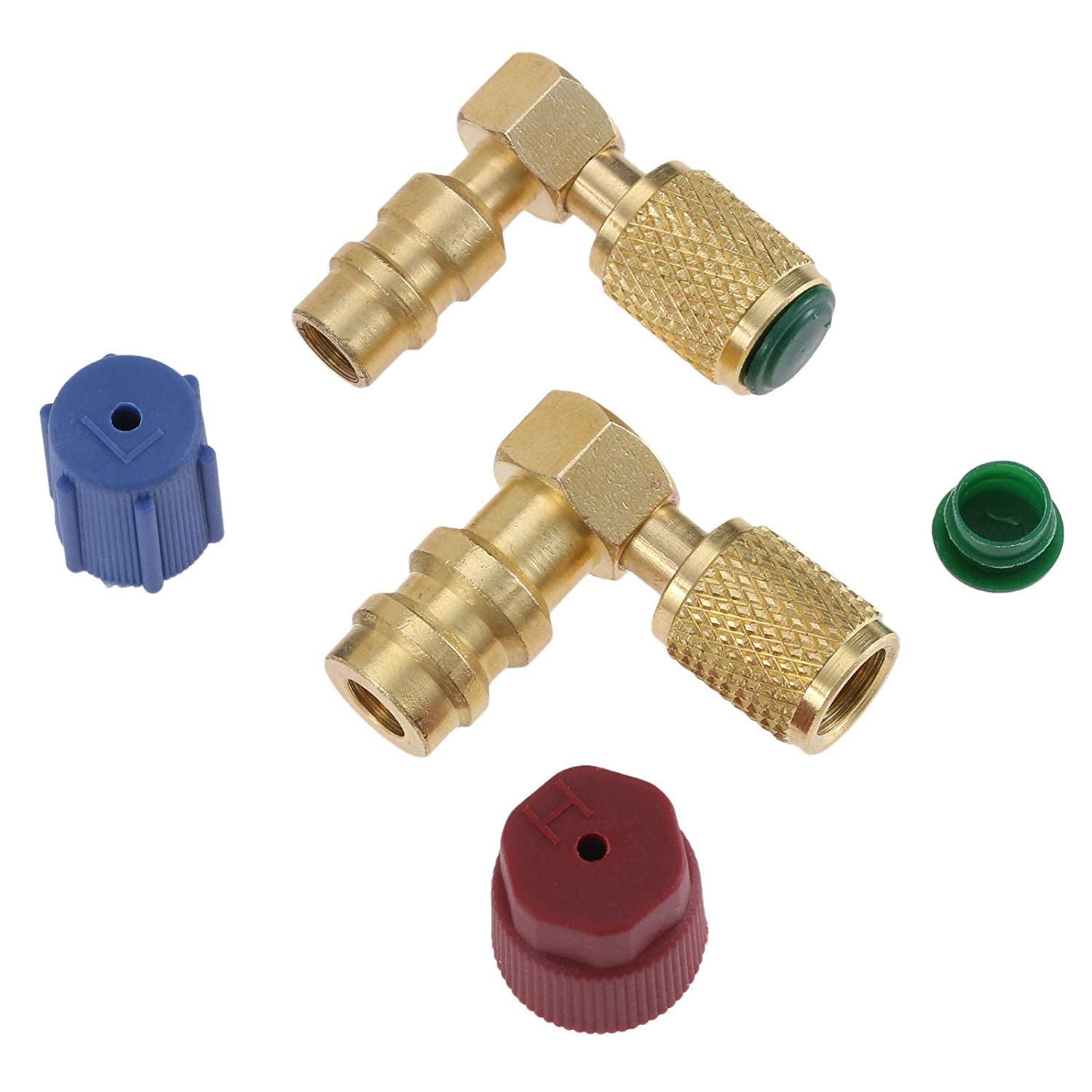 Aupoko R12 to R134A High/Low AC Port Retrofit Conversion Adapter Fitting Kit, R12 to R134A Retrofit Kit, Quick Coupler Valve A/C 90° Fitting, High and Low Side R-12 to R-134A Retrofit with 2 Caps