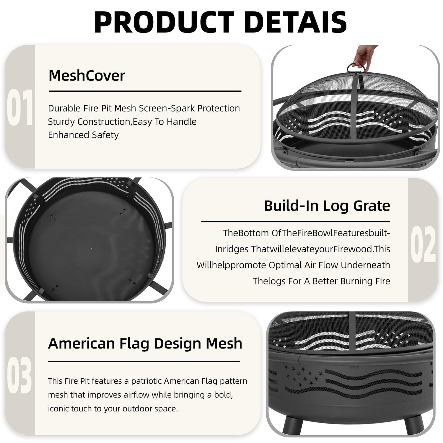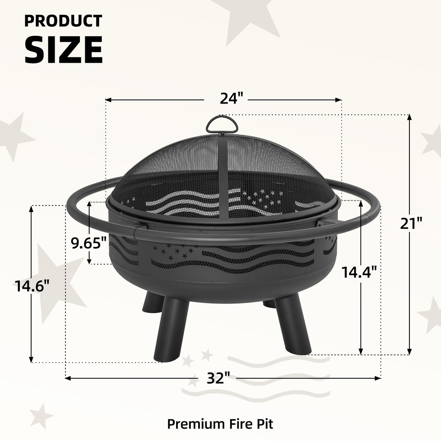 - Safe & Convenient Accessories Included-Comes with a mesh spark screen to prevent flying embers, a fire poker for safe fire management, and sturdy legs for stable placement on patios, lawns, or decks.