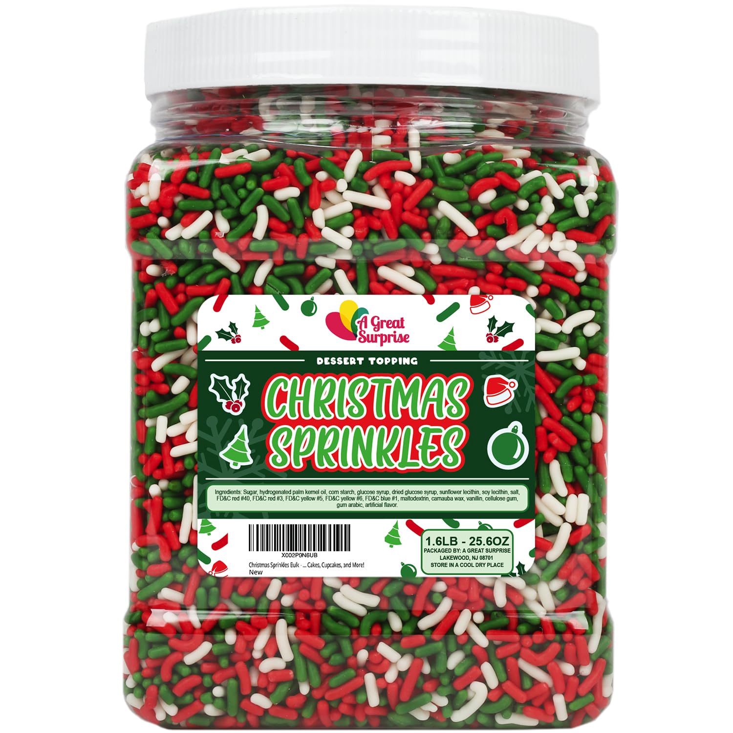 Christmas Sprinkles Bulk - 1.6 Pounds - Holiday Jimmies - Red White and Green Xmas Baking Toppings for Cookies, Cakes, Cupcakes, and More!