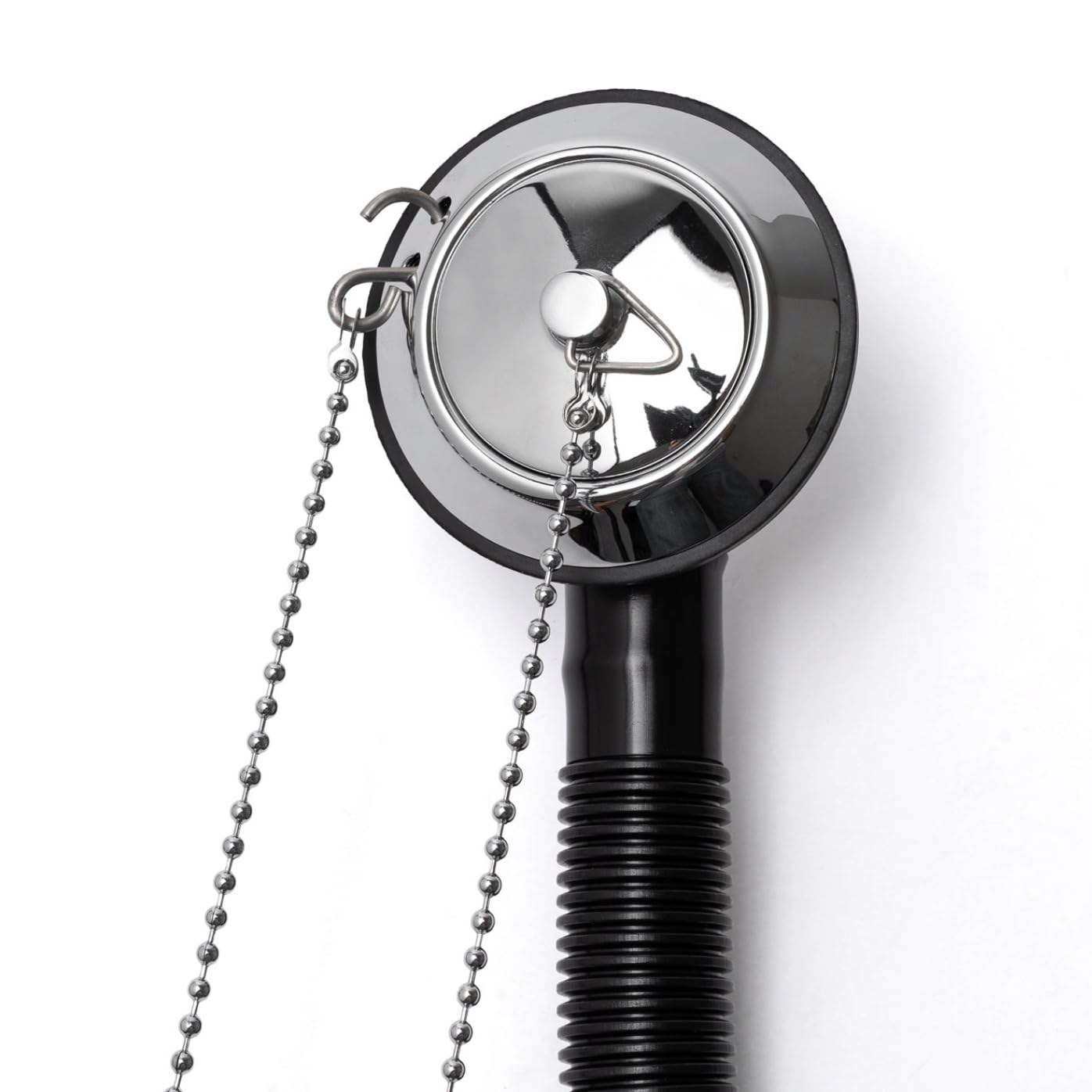Details: Chrome plated bath plug and chain with plug retainer and link chain Features: Universal - Use with any standard acrylic bath Solid Brass plug, Cap and overflow (Will not rust) Chrome plated