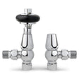 Chrome Traditional Angled Radiator Valves Antique Radiator Valves 15mm x 1/2" for Heated Towel Rails & Central Heating Radiators Wood Head Brass Radiator Valve Set