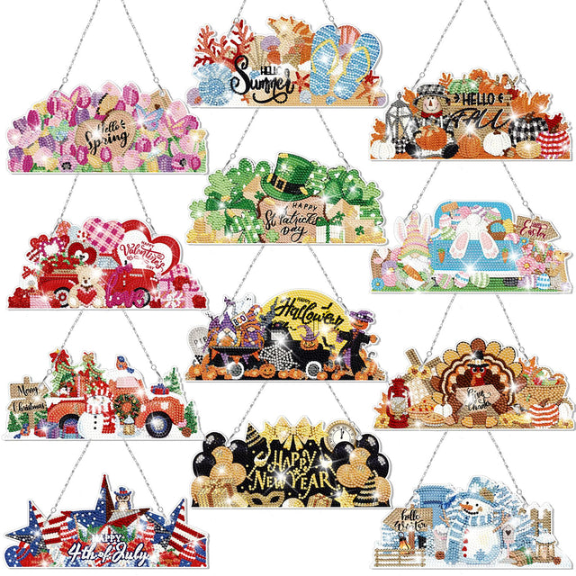 - Quality Materials: Seasonal diamond art kits are made with sturdy acrylic, these rhinestones diamond art pendants can withstand the test of time, allowing you to enjoy these beautiful creations for years to come; 12 Festival feature designs shapes and quality materials also enhance the overall beauty, allowing you to add festive cheer to your home for years
