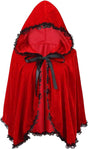 Colorful House Velvet Red Riding Hooded Cape Halloween Christmas Cloak(Black Lace Bright Red,23.62'')