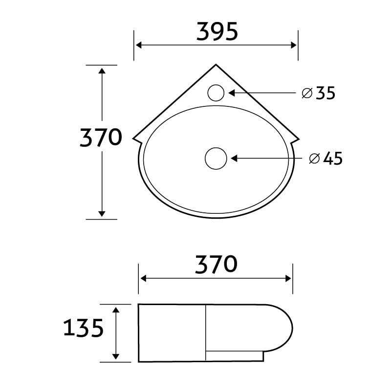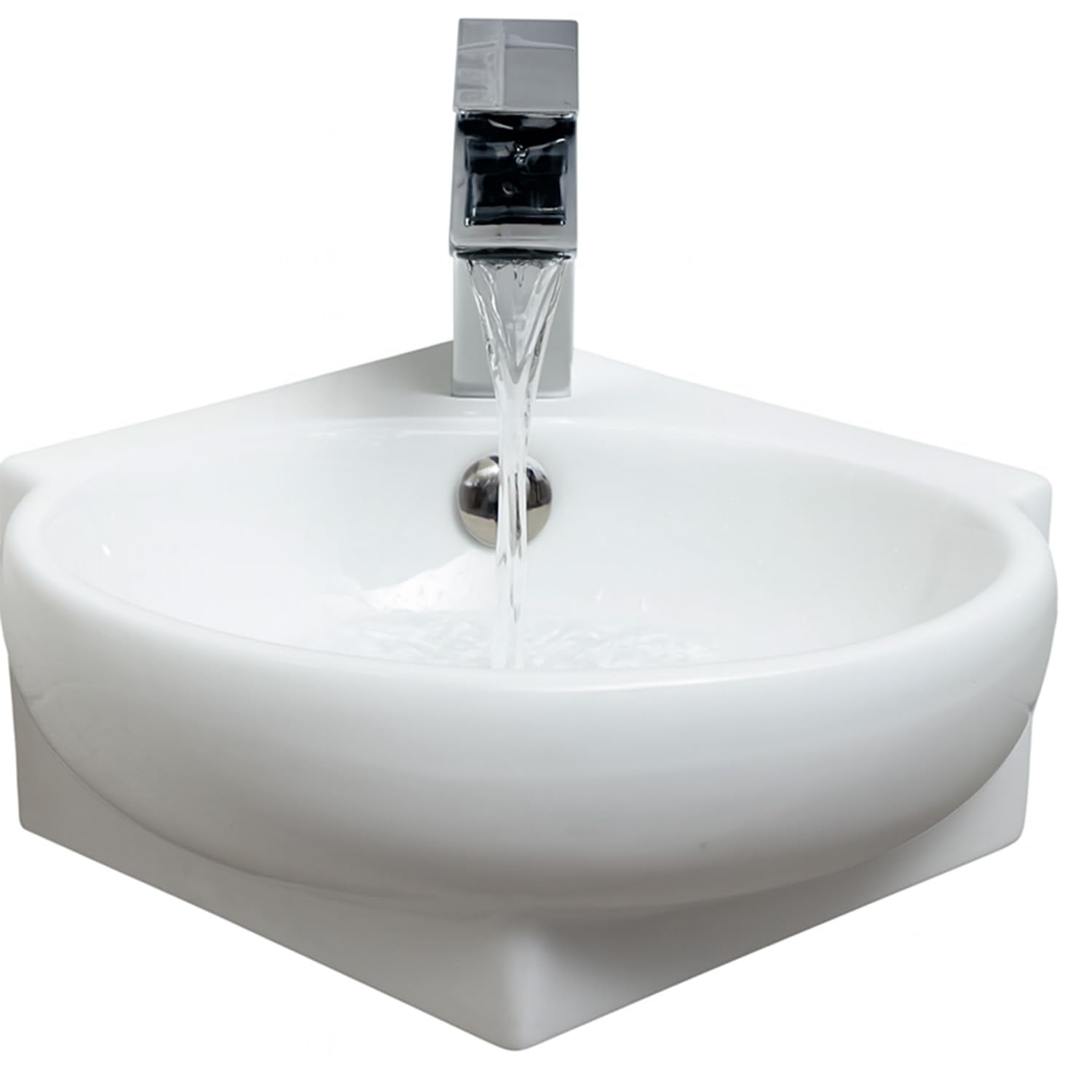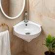 Compact Corner Wall Hung Basin Sink with Single Tap Hole Space-Saving Cloakroom Hand Wash Basin White Ceramic Corner Sink for Small Bathrooms & En-suites 370mm x 395mm