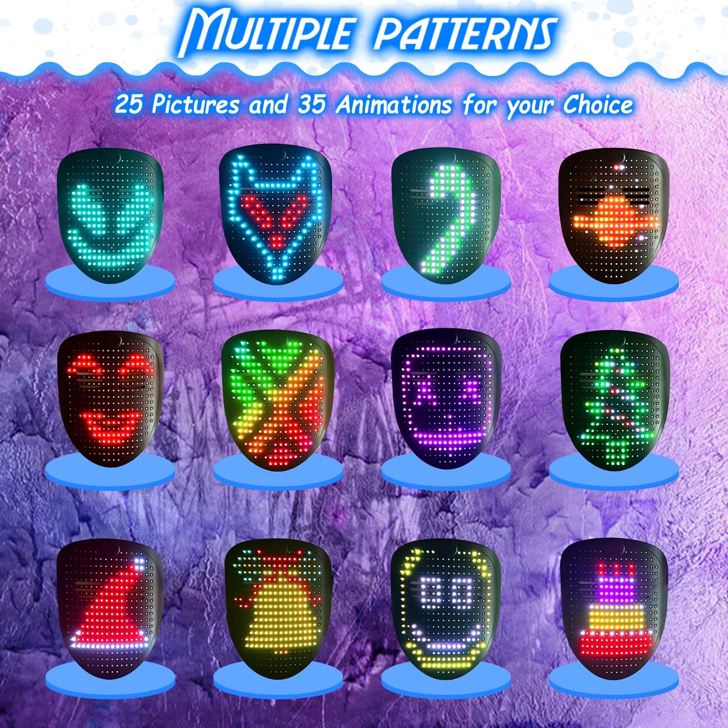 - [Fun and Inspiration Technology Mask]: The bright and vibrant colors, along with the excellent graphics and animations, ensure that you'll grab everyone's attention. Our Led Mask combines novelty and fun with a sense of technology, to make you stnad out at all the party!