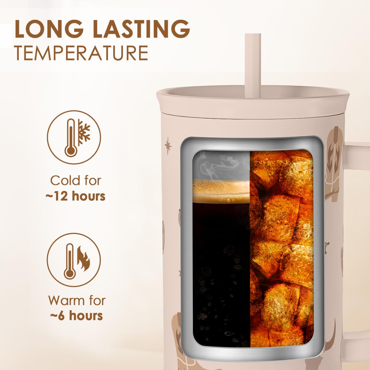 Cowgirl Tumbler 40oz for Women Girls – Stainless Steel Travel Coffee Mug Cup with Handle and Straw, Gift for Birthday Christmas
