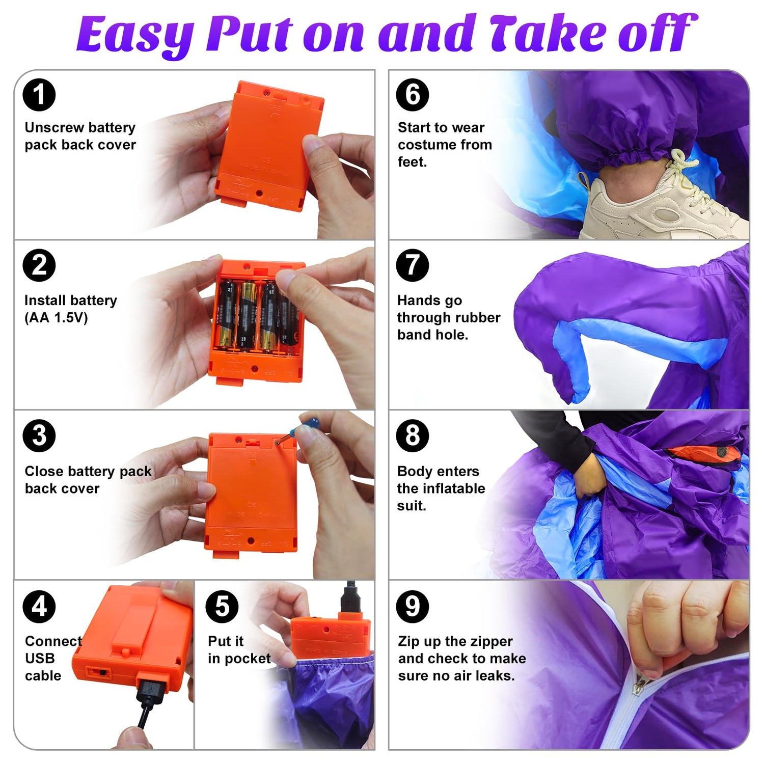 - ⚡ Fast Inflation: Our octopus costume runs on standard AAA batteries OR any USB power bank – just plug & play! (Power sources & batteries not included). Pack this portable inflatable costume in its carry bag for beaches, halftime shows, or surprise parties. Adventure-ready in 60 seconds