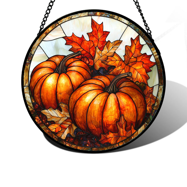 DASTOLL Stained Glass Window Hanging, Pumpkin Maple Leaf Suncatcher for Doors Home Sun Catchers Decoration and Christmas, Mother's Day Birthday Gifts for Women, Men, and Mom 7.8 in