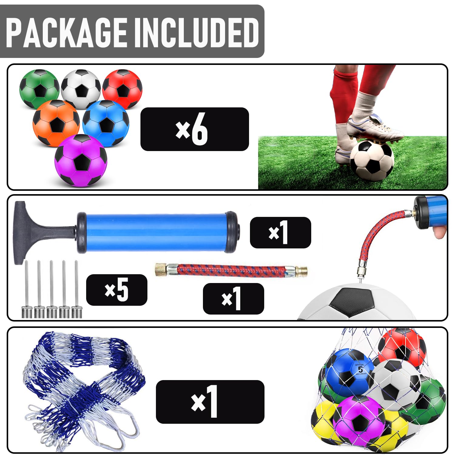 - 【Thoughtful Set】You will receive 6 packs official regulation size 5 of composite leather Soccer Balls with 1 pump, and 1 mesh bag that is big enough to hold up to all Soccer Balls. Ideal for gifting, it’s a versatile choice for children, family members, classmates, or friends.