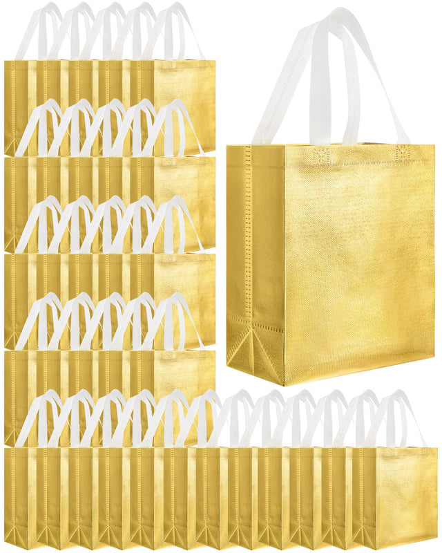 Eccliy 80 Pieces Gift Bags Set Glossy Reusable Tote with Handles Grocery Bags for Wedding, Halloween, Thanksgiving, Christmas(Medium,Gold)
