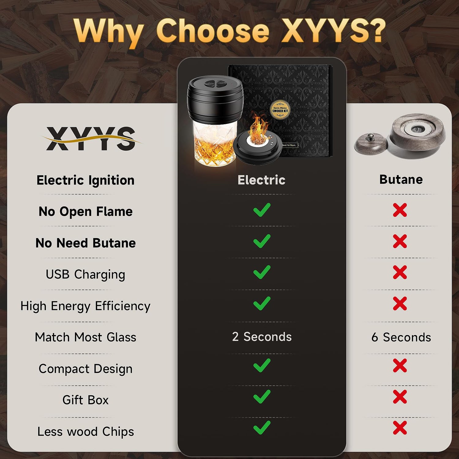 - 【6 Flavored Wood Chips】Explore a spectrum of flavors with six included wood varieties: oak, apple, hickory, cherry, pear, and beech. Infuse your whiskey in just seconds— delivering a rich, natural aroma that transports you to the great outdoors and melts away the stress of the day