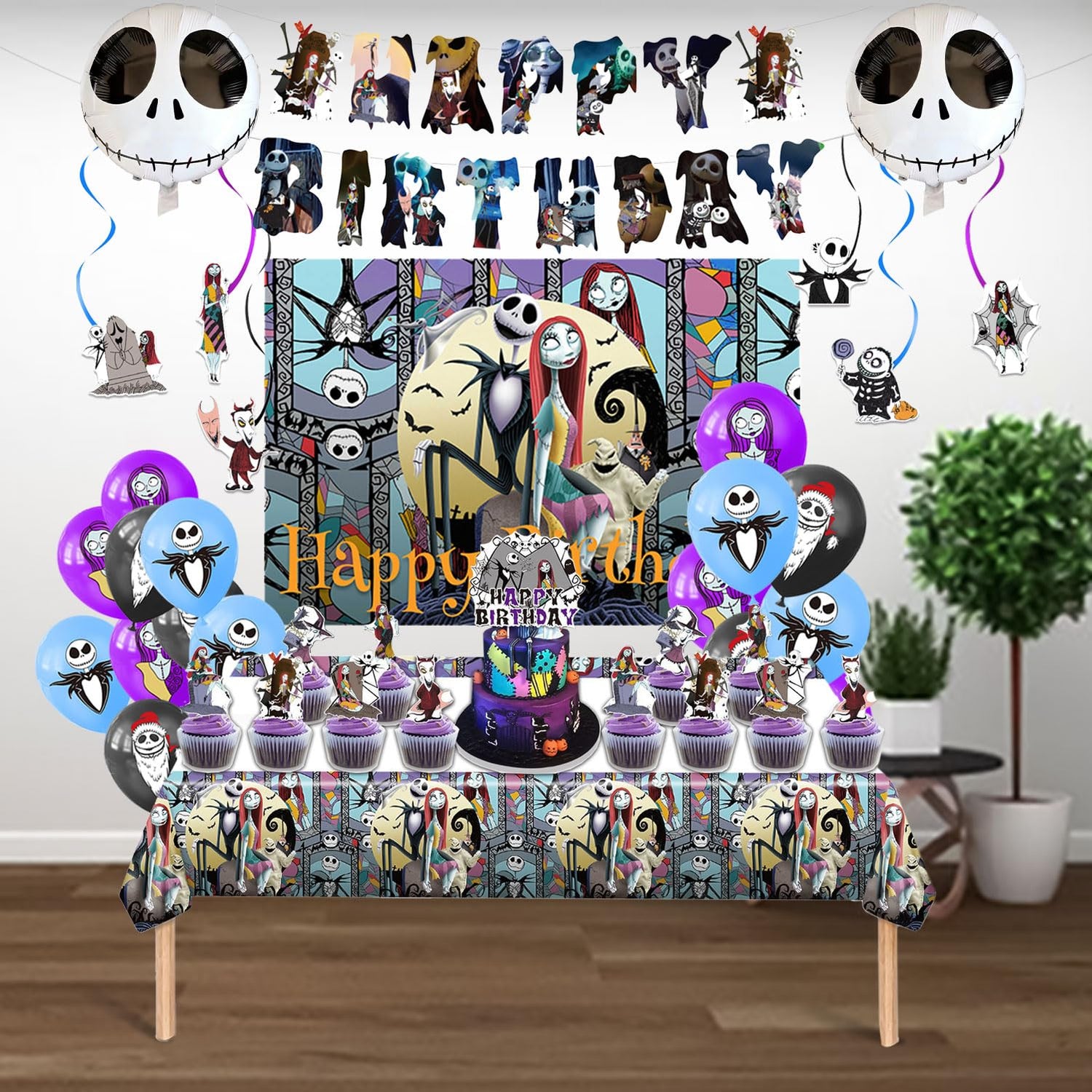 - NIGHTMARE CHRISTMAS PARTY: Most birthday party decorations are made of cardstock and are not easy to deform. The materials we choose are safe and sturdy, so you can use them with confidence. Latex balloons are made of high-quality latex, not easy to break. The hanging swirls are double-sided printed, beautiful, and delicate, the backdrop is made of durable vinyl fabric, not easy to fade. You can decorate your home to your heart's content and enjoy the party time that belongs to yours.