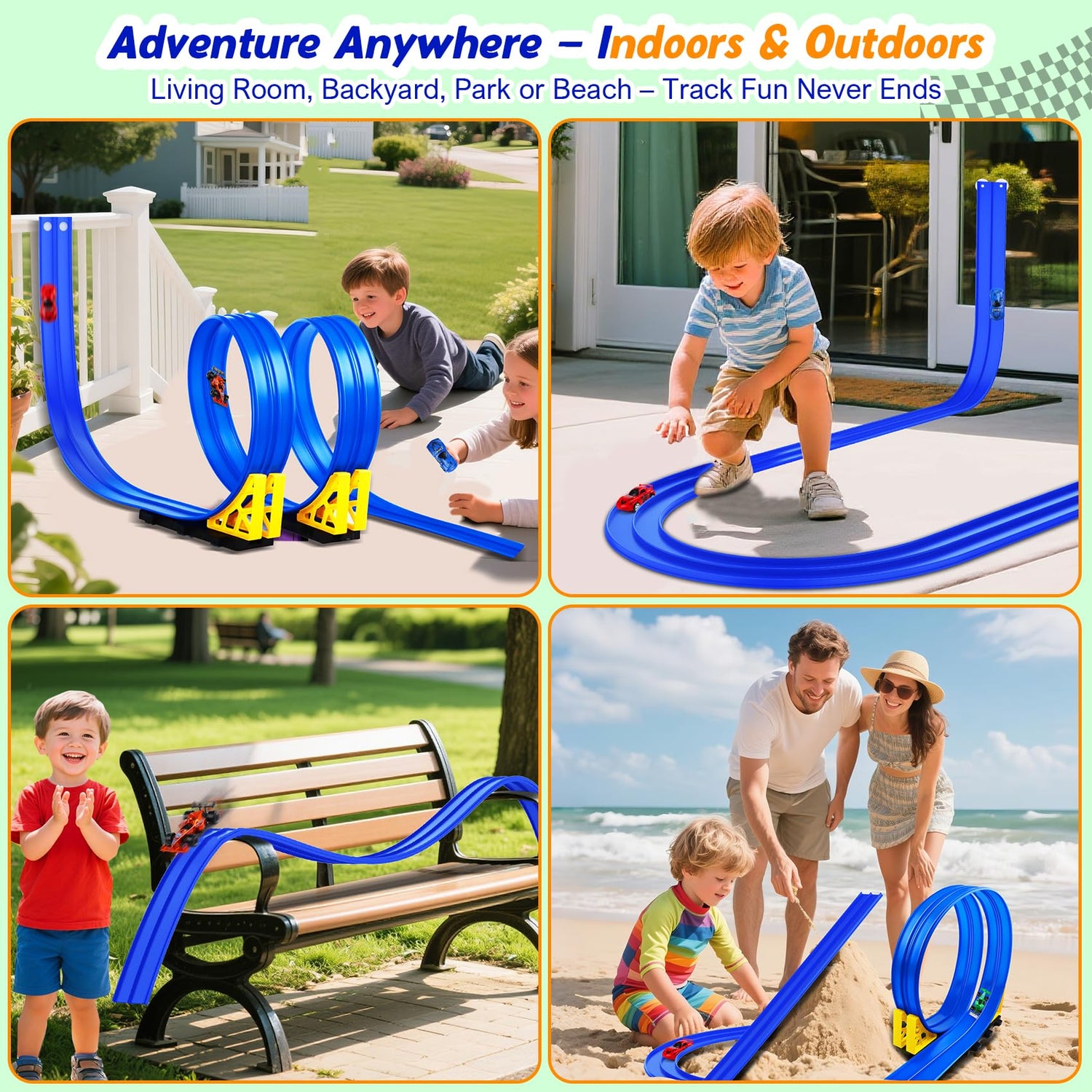 - 【Boost Creativity & Parent-Child Bonding】 Not just a toy, this flexible car track is a tool for imagination. Kids can design loops, ramps, sharp turns, and dramatic drops, while parents join in the building fun. It encourages problem-solving, hands-on learning, and screen-free play, creating meaningful bonding moments.