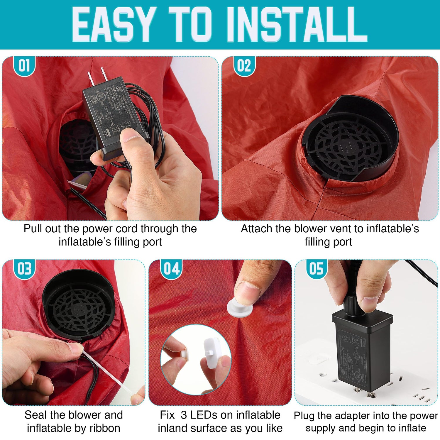 - Stable Working: the inflatable blower fan can blow up and decorate various inflatables within 6 feet height like ghost, witch, pumpkin, Santa Claus, snowman and so on; Provide powerful and stable flowing air and colorful lighting