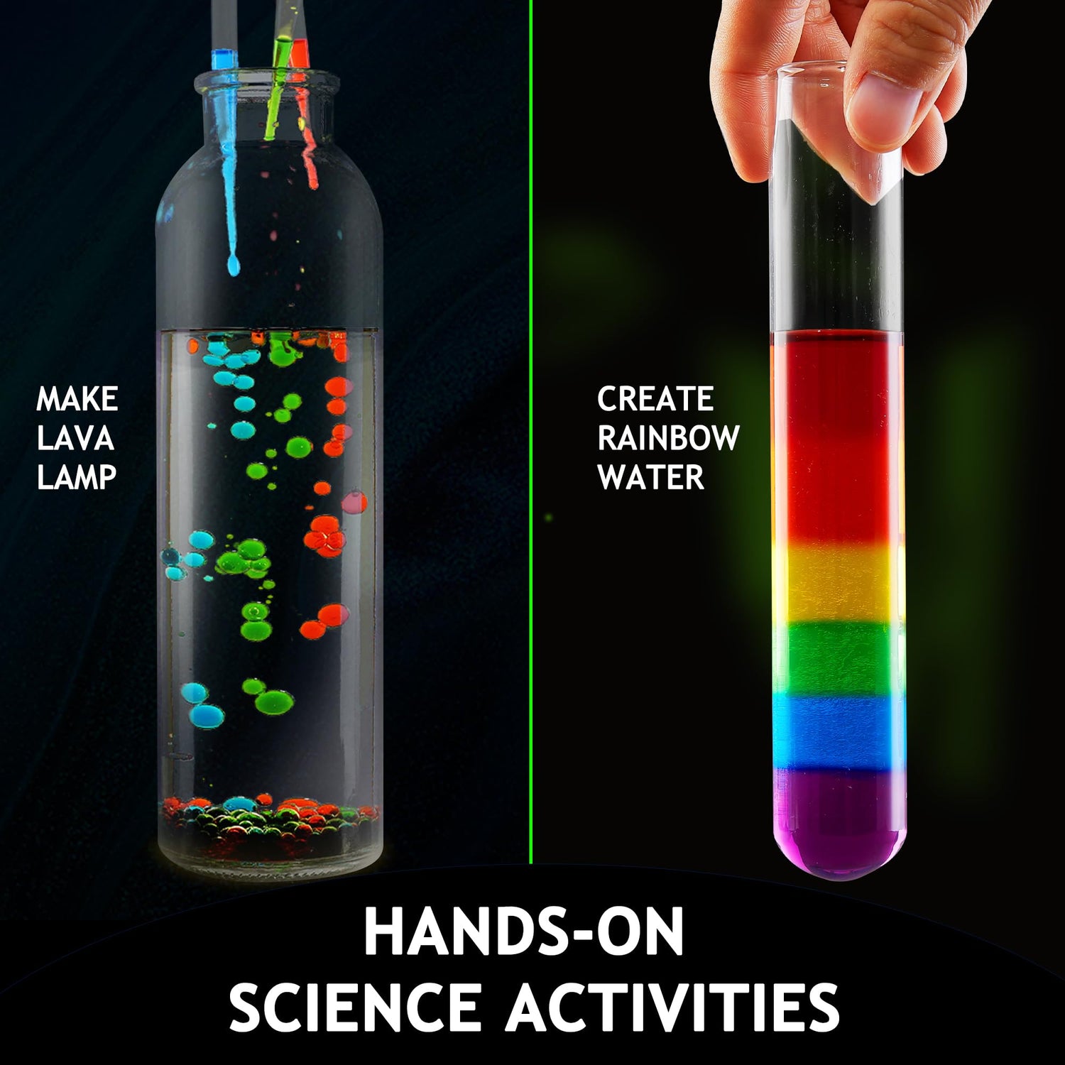 - LITTLE SCIENTIST IN THE MAKING: This 100+ piece set includes plenty of scientific lab tools like a beaker, measuring cups, test tubes, droppers, googles, gloves and more materials necessary to conduct over 100 cool and fun experiments, which encourage children to pretend and become real scientist.