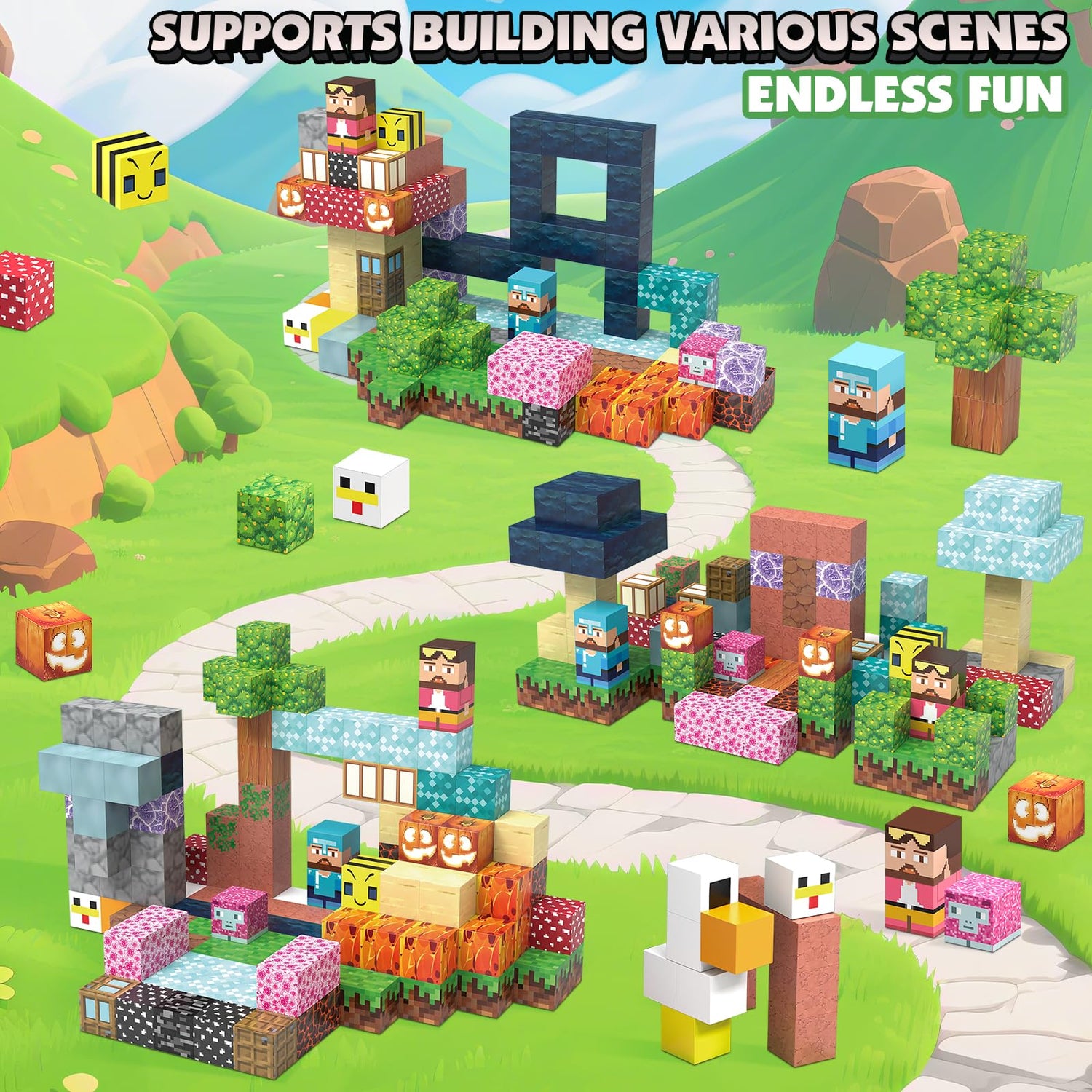 • [Safe & Durable for Little Hands] Made with safe, non-toxic materials, these magnetic blocks feature smooth edges and strong magnets that hold firmly without pinching. The high-quality ABS plastic ensures long-lasting play, making them ideal for kids ages 3-6 4-8
