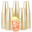 JOLLY CHEF 100 Pack 14 oz Gold Plastic Cups, Disposable Gold Glitter Plastic Cups, Clear Plastic Cups Tumblers, Wedding Cups Party Cups,Ideal for Halloween,Thanksgiving,Christmas