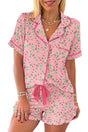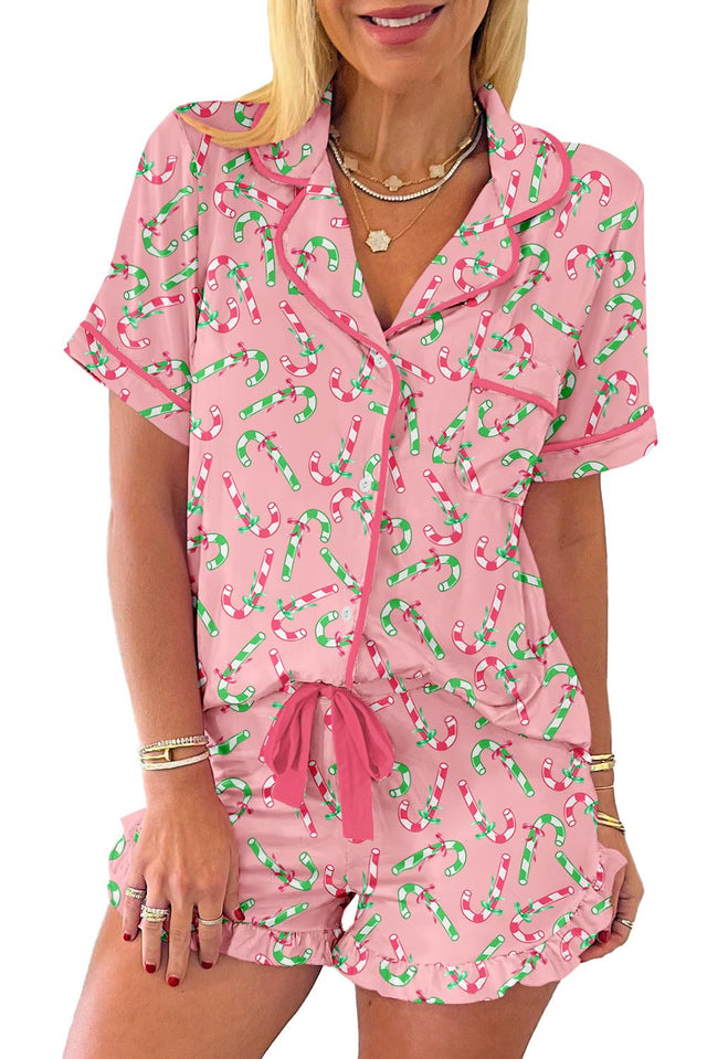 KevaMolly Womens Christmas Lounge Sets Pink Christmas Candy Cane Print Pocketed Knotted Lounge Set Short Sleeve Xmas Top and Shorts M