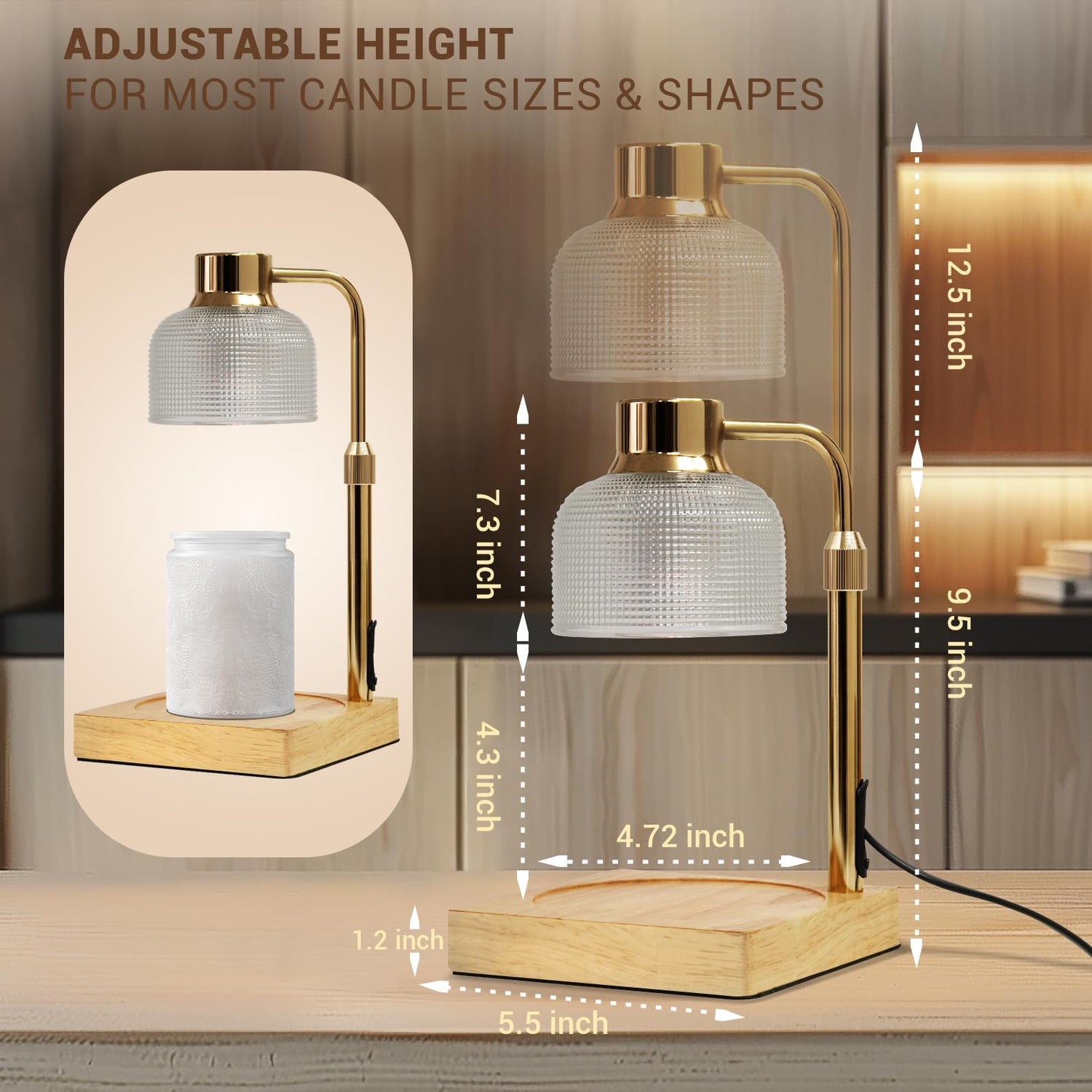 • ADJUSTABLE HEIGHT FIT VARIOUS CANDLES: Our candle lamp warmer comes with a adjustable pole,.you can easily customize the height according to your preference and the size of the jar candle. The height can be adjusted to 12 inches or lowered to 8.7 inches, no more worrying about candle size