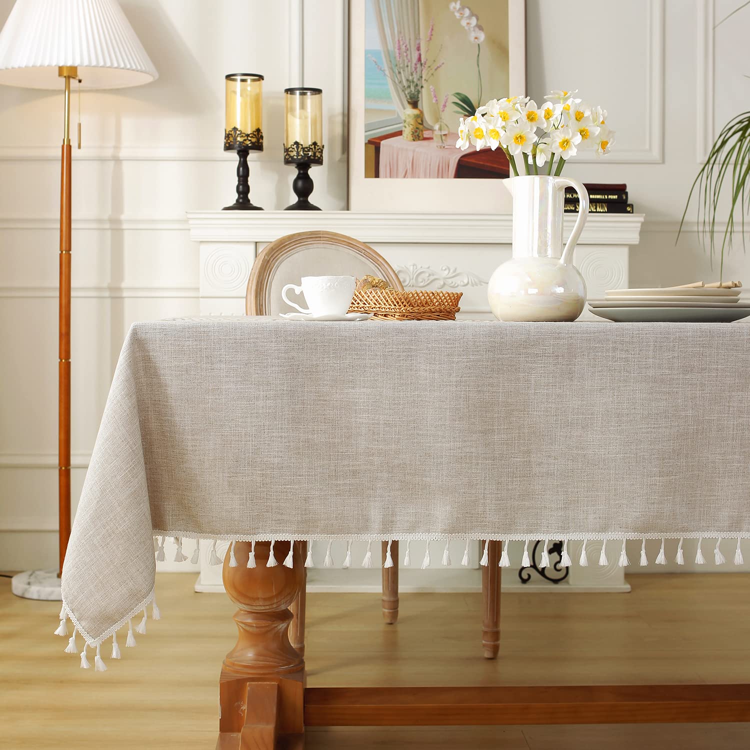 - Tassel edge design: The linen tablecloth with delicate embroidery patterns and beautiful fringe tassel gives you a decent elegant feeling. Embroidered simple pattern, cute fringe tassel pom-poms edge