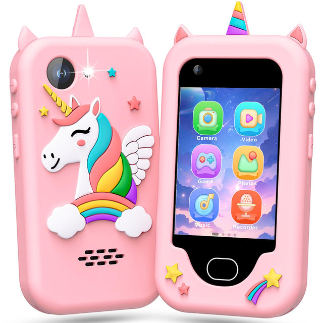 - 【Perfect Gifts for Girls】This Kids Smart Phone is perfect for birthday, Christmas, festival, or holiday gift for girls aged 3-10. Easy for toddler to capture photos and share moments. And the anti-fall unicorn silicone phone case can prevent accidental damage.