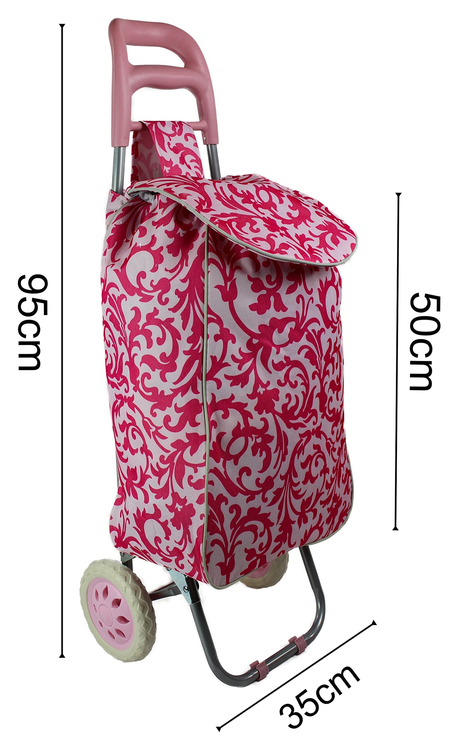 Large Shopping trolley. Modern and colourful pull push cart. Lightweight and strong. Collapsible, folding stow away design. (Pink)